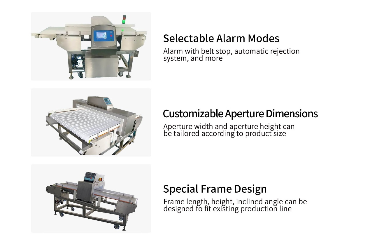 1.The above sensitivity is tested by standard testing piece in empty running conveyor, while the actual sensitivity with products will depend on the type, dimension, weight, package, composition, status of the products, position of the mixed contaminants and environment factors, etc.